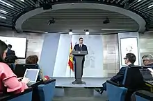 Lors des élections générales du 10 novembre, le PSOE arrive de nouveau en tête mais enregistre une légère baisse[39]. Dès le 12 novembre, le Parti socialiste et Unidas Podemos concluent un accord de principe pour constituer un gouvernement de coalition dirigé par Pedro Sánchez avec Pablo Iglesias comme vice-président[40]. Le soir du 11 décembre, après avoir consulté 18 forces politique en deux jours, le roi Felipe VI convoque Pedro Sánchez et lui propose d'être une nouvelle fois candidat à l'investiture du Congrès des députés[41].