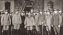 En échange de cette participation, les puissances étrangères font des concessions, acceptant de différer de cinq ans le paiement l'indemnité prévue par le Protocole de paix Boxer, et d'augmenter de 5 % les droits de douane des produits étrangers qui entrent sur le sol chinois. La participation chinoise à la première guerre se traduit cependant par un contrôle accru des puissances étrangères. En , le Japon et les États-Unis signent l'accord Lansing–Ishii, qui reconnaissent la doctrine de la porte ouverte[2], et, en contradiction avec ce principe, reconnaissent l'intérêt particulier du Japon pour la Chine, notamment, en raison de sa proximité géographique, sur les zones limitrophes.