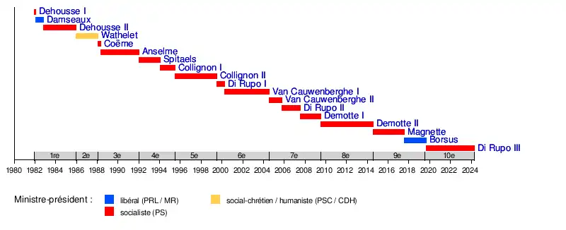 | 2e Législature | Exécutif Wathelet | - (2 ans, 1 mois et 24 jours) |