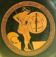 Néanmoins on admet souvent qu'une forme d'identité grecque (certes souvent formulée du point de vue athénien) existe au moment des Guerres médiques, ou du moins à leur sortir, en réponse à la menace que font peser les Perses sur la liberté des Grecs, et à la suite de la victoire des cités grecques qui ont choisi de résister : c'est donc une définition par la négative, face à un ennemi. C'est dans ce contexte qu'un texte souvent cité d'Hérodote (VIII, 144), définit la « grécité » par une même ascendance, l'usage d'une même langue, malgré les différences dialectales, et des mêmes rites et usages[13]. Cependant lorsqu'un mot d'ordre d'unité des Grecs est mis en avant, c'est pour servir l'ambition hégémonique d'une puissance (Athènes, royaume de Macédoine) : c'est donc par bien des aspects une affaire de contexte politique et militaire[14].