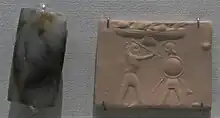Sceau-cylindre perse avec impression moderne, représentant un soldat « mède » plantant une lance dans un soldat grec. British Museum.