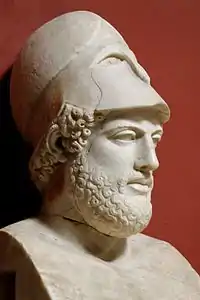 • des magistrats civils et militaires (les deux étant souvent confondus), généralement désignés pour un an, qui se chargent de la gestion de la cité, et de la conduite de ses armées ; Sparte est la seule cité connue à avoir conservé des rois, avec une fonction qui n'est pas à proprement parler monarchique, alors que la tyrannie, courante à l'époque archaïque, a quasiment disparu dans la Grèce classique où le terme a pris une connotation négative (à la différence de ce qui se passe à la même époque en Grande Grèce)[39],[40].