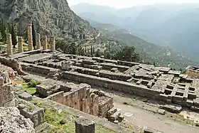 Ruines du temple d'Apollon à Delphes, reconstruit après un tremblement de terre qui l'a détruit en 373 av. J.-C.