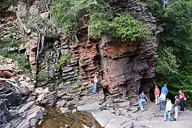 Un autre exemple est le grès de Potsdam, qui est une formation géologique datant du milieu à la fin du Cambrien située au nord des États des États-Unis de New York et du Vermont ainsi qu'au sud du Québec. Découvert au XIXe siècle, il est formé par cémentation de grains de quartz. Souvent de couleur rouge et ocre avec pigments rouges, il est utilisé dans la construction, les réfractaires et les garnitures de fours pour la fusion des métaux[22].