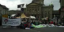 Plusieurs centaines de manifestants non violents ont occupé la place Fédérale (devant le Palais fédéral) dès le au matin, avant d'être évacué par la police mercredi matin[85]. Plus de 2 000 personnes ont ensuite participé à une marche pour le climat le [85]. Les grévistes du climat veulent notamment une loi sur le CO2 plus efficace et la neutralité carbone en 2030[83].