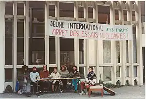 Une grève de la faim ou jeûne de protestation, est un moyen de protestation non violent utilisé entre autres par Gandhi puis par les prisonniers républicains d'Irlande du Nord (voir Grève de la faim irlandaise de 1981 et Bobby Sands) qui ont défendu leur cause en menant des grèves de la faim en 1980 et 1981[1].