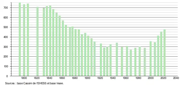 (Sources : Ldh/EHESS/Cassini jusqu'en 1999[16] puis Insee à partir de 2006[25].)