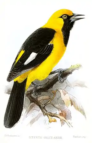 Au cours des années 1850, Graceanna Lewis déménage à Philadelphie, où elle travaille étroitement avec un petit cercle de Quakers actifs dans les sciences naturelles. En 1862, elle y rencontre John Cassin de l'Académie des sciences naturelles de Philadelphie, l'un des principaux ornithologues américains. Elle étudie sous sa tutelle l'ornithologie à un niveau avancé pendant près d'une décennie[4]. En 1867, afin de remercier sa protégée, John Cassin donne à l'Oriole à bord blanc, le nom scientifique de Icterus graceannae[5].