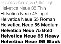 À l’extrême, les fontes de caractères peuvent être déclinées selon les dénominations suivantes, par graisse croissante (entre parenthèses, la valeur CSS correspondante) :