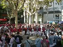 Quand tous les castells sont finis, on joue la musique pour déjeuner (le toc del vermut, littéralement, l'appel à l'apéro) et si les castells ont été réussis et les castellers sont contents, on joue encore de la musique pour célébrer et faire la fête[4].