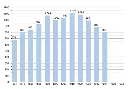 - Source: DGS , de 1831 à 1981=recensements population; à partir de 1990 = nombre d'habitants chaque 1 janvier
