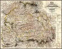 Les capitales de la Transylvanie sont tour à tour Gyulafehérvár/Karlsburg/Alba Iulia, Nagyszeben/Hermannstadt/Sibiu puis Kolozsvar/Klausenburg/Cluj. En 1784, la grande-principauté, jusque-là divisée en neuf comitats et de nombreux sièges sicules et saxons, est organisée en dix Bezirke (Broos, Dees, Hermannstadt, Karlsburg, Klausenburg, Kronstadt, Neumarkt, Nösnerland, Schomenland, Szeklersland) par l'empereur Joseph II d'Autriche[2].