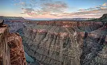 Le Grand Canyon ou Grand Cañon[1], en anglais Grand Canyon, en hopi Ongtupqa, en yavapai Wi:kaʼi:la, est un canyon des États-Unis situé dans le Nord-Ouest de l'Arizona. La gorge a été creusée par le fleuve Colorado dans le plateau du même nom et l'empilement de couches géologiques de Grand Staircase. Fondé en 1919, le parc national du Grand Canyon couvre un territoire protégé de 4 927 km2[N 1]. Il est fréquenté chaque année par plus de quatre millions et demi de visiteurs. La diversité et la singularité naturelle et paysagère du site l'ont fait reconnaître patrimoine mondial de l’Humanité par l’UNESCO en 1979.
