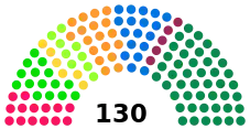 1950 : 124 sièges ; 1956 : 125 sièges ; 1965 : 126 sièges.