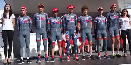 | Matteo Pelucchi ({{2e}}), Nacer Bouhanni ({{1er}}) et Francesco Chicchi ({{3e}}). | |||