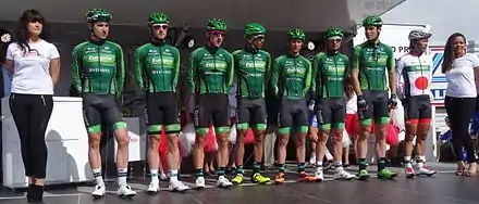 Nacer Bouhanni et le trophée de la meilleure équipe.