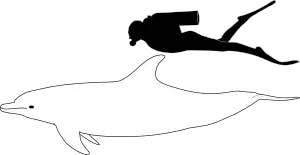 Le mâle est un peu plus grand que la femelle. En moyenne, le grand dauphin mesure 3 m et pèse 400 kg.