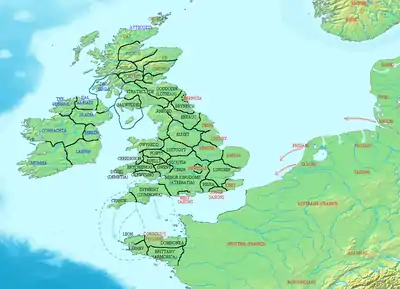 L'île de Grande-Bretagne est, autour des années 500 émiettée en petits royaumes pictes, celtiques ou anglo-saxons dont les peuples et les noms se retrouvent parfois aussi en Irlande, en Armorique et en Germanie.