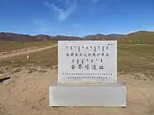 Panneau indiquant l'emplacement du site archéologique, en mongol et chinois han