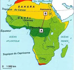 Depuis la préhistoire, le Sahara connaît des phases naturelles d'extension et de recul, mais le phénomène d'extension a pris de l'ampleur à cause de l'accroissement des populations sur sa périphérie et des changements climatiques. Depuis 1900, le Sahara a ainsi progressé vers le sud de 250 kilomètres et ce sur un front qui en fait plus de 6 000. C'est ainsi que la steppe du Sahel connaît un dessèchement relativement brutal.