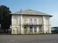 Le bâtiment se trouve en retrait par rapport à l'alignement de la rue Ana Ipatescu.