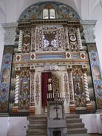 Sur le mur Est, se trouve une des arches saintes les mieux conservées de Pologne. Elle est en stuc néobaroque avec de la peinture polychrome datant de 1936.