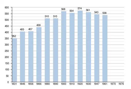 - Sources:INS, Rem:1831 jusqu'en 1970=recensements, 1976= nombre d'habitants au 31 décembre