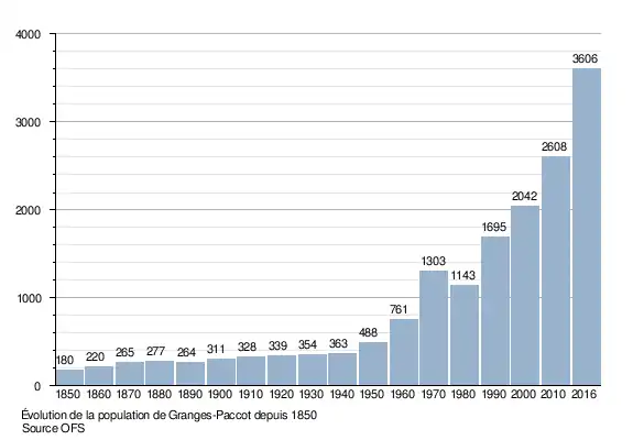 Le graphique suivant résume l'évolution de la population de Granges-Paccot entre 1850 et 2016[3] :