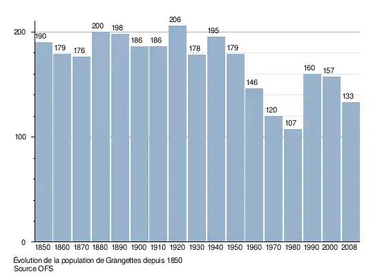Le graphique suivant résume l'évolution de la population de Grangettes entre 1850 et 2008[4] :