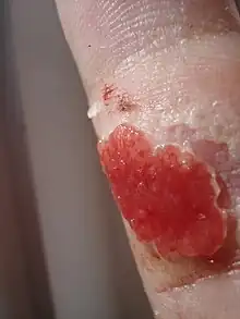 Par granulation (lat. granulum = particule) on désigne en dermatologie et en chirurgie la formation de nouveau tissu conjonctif dans le cadre de la cicatrisation, fortement irrigué par des capillaires (petits vaisseaux sanguins). À cause de la présence de nombreux capillaires, la surface apparaît être granulaire. On parle de tissu granulaire[1],[2].