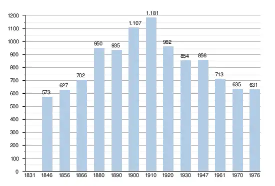 - Source: DGS, 1831 à 1970=recensements population, 1976= habitants au 31 décembre