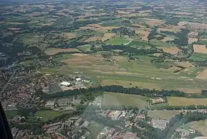 L'occupation des sols de la commune, telle qu'elle ressort de la base de données européenne d’occupation biophysique des sols Corine Land Cover (CLC), est marquée par l'importance des territoires agricoles (74,1 % en 2018), néanmoins en diminution par rapport à 1990 (78,8 %). La répartition détaillée en 2018 est la suivante : terres arables (38,7 %), zones agricoles hétérogènes (35,2 %), zones urbanisées (12,6 %), forêts (8,8 %), zones industrielles ou commerciales et réseaux de communication (2,7 %), milieux à végétation arbustive et/ou herbacée (1 %), mines, décharges et chantiers (0,8 %), cultures permanentes (0,2 %)[23]. L'évolution de l’occupation des sols de la commune et de ses infrastructures peut être observée sur les différentes représentations cartographiques du territoire : la carte de Cassini (XVIIIe siècle), la carte d'état-major (1820-1866) et les cartes ou photos aériennes de l'IGN pour la période actuelle (1950 à aujourd'hui)[Carte 2].