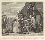 - Estampe qui n'a pas été publiée du vivant de Hogarth[41].