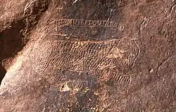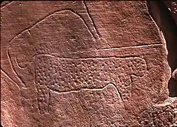 D'autres gravures représentent un bovidé, un rhinocéros, une antilope, un fauve, une autruche.