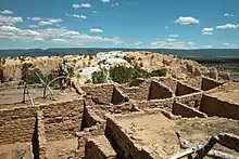 Les espaces étaient généralement divisés en quatre sections alignées sur les directions cardinales, qui avaient une signification religieuse. Les grandes maisons de Pueblo Alto (en) étaient alignées le long d'un axe nord-sud. Les entrées des structures étaient généralement orientées au sud ou au sud-est[2] ; fournissant de l'ombre du soleil d'été et de la chaleur du soleil d'hiver. L'arrière des bâtiments a été joint avec un grand mur pour fournir un abri du vent[4]. Au centre de la structure se trouvait une place destinée à servir de centre communautaire. Il était également courant d'avoir des terrains de jeu (en) et des Monticules de plateforme (en).