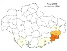 D'après le recensement de 2001, il y a encore 91 500 Grecs en Ukraine, dont la grande majorité (environ 77 000) résident dans l'oblast de Donetsk. Des estimations plus élevées (160 000) ont également été rapportées avant la dislocation de l'URSS, la différence de nombre s'expliquant par l'assimilation forcée des Grecs par le gouvernement soviétique. D'autres petites populations de Grecs se trouvent à Odessa et dans d'autres grandes villes.