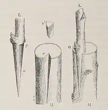 C'est une technique de greffage dite « à rameau détaché » : un rameau, ou greffon, est mis en contact avec un porte-greffe, tous deux entaillés en forme de V.