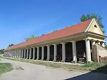 Le séchoir à maïs (kotarka), quant à lui, situé un peu en retrait de l'alignement de la rue, est un bâtiment très allongé construit dans l'esprit du classicisme[2]. Autrefois construit en bois, il était édifié au-dessus du sol et reposait sur des piliers en pierres ; il possédait un porche ouvert et une colonnade avec des colonnes aux chapiteaux doriques supportant une architrave ; au début du XIXe siècle, le porche a été fermé et cette partie est devenue un espace d'habitation[2]. Le toit à pignon est recouvert de tuiles[2].