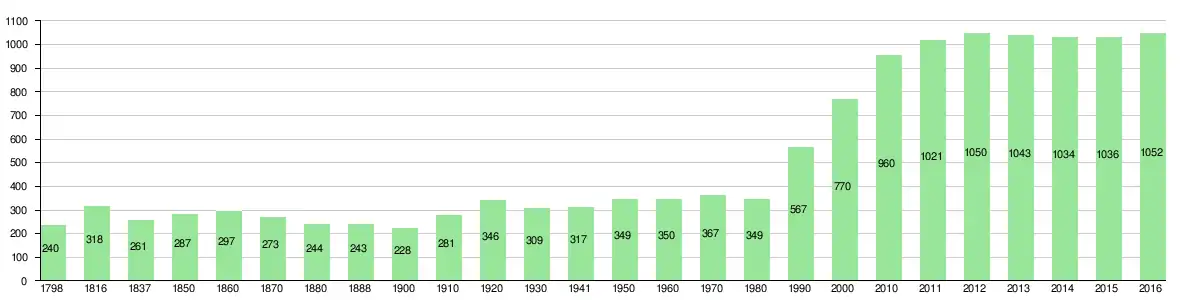 Sources : 1798-1837 : recensements helvétiques et cantonaux ; Office fédéral de la statistique ; Résultats du recensement de 1850 à 2000, ESPOP 2010, depuis 2011 STATPOP