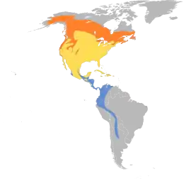 Les sous-espèces côtières migrent le long de la côte pacifique de l'Amérique du Nord et hivernent du Mexique au Costa Rica, tandis que les oiseaux continentaux migrent vers l'est de l'Amérique du Nord (en faisant un détour important) pour ensuite s'éloigner vers le sud via la Floride et hiverner du Panama à la Bolivie.