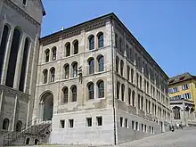 Après la réforme, les chanoines commencèrent l'instruction des jeunes en théologie. C'est là que fut fondé l'ancêtre de l'université de Zurich actuelle, dont le logo fait toujours référence à la cathédrale. Les bâtiments néoromans à l'arrière du Grossmünster utilisés par l'ancienne université sont maintenant utilisés par un séminaire de théologie.