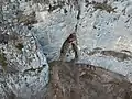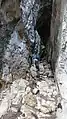 L'accès à la grotte se fait par un escalier taillé à même la roche.