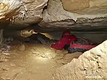 La taphonomie du dépôt met en évidence plusieurs temps d'arrivée des ossements, dont beaucoup ont probablement été sélectionnés parmi des carcasses déjà démembrées à l'extérieur. La période pendant laquelle la formation du dépôt a eu lieu ne doit pas être longue. Cependant, l’état de fossilisation est différencié et il n’est donc pas possible d’émettre une hypothèse de datation précise. Le fait est qu'une fine couche de calcite recouvrait une partie des os supposés les plus anciens, tandis que les autres - qui en étaient dépourvus - ne sont recouverts que par un sédiment de terre brune.