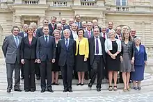 - 11 membres du Nouveau Centre (NC), 5 du Parti radical (PRV) et 1 de La Gauche moderne (LGM), trois formations associées au sein de L'Alliance républicaine, écologiste et sociale (ARES) et liées à l'UMP au sein de la majorité présidentielle ;