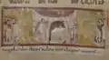 | Fragment d'un évangile Cotton | Londres, British Library, Cotton Claudius B.V, f.134v[1]. | vers 800 | Une miniature d'un manuscrit des évangiles ou d'un évangéliaire abimé dans un incendie (?)[2]. | ![]() |