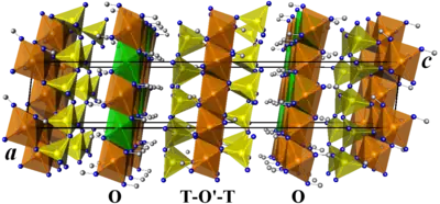 Il existe deux types de couches d'octaèdres, notées O et O', qui diffèrent par leur taux de remplissage. Les couches O' sont entourées par deux couches d'anneaux à six membres de tétraèdres d'aluminosilicate, notées T, pour former des couches T-O'-T.