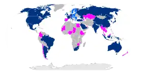 Si l'on considère les membres en fonction du régime politique, il est possible de compter : deux unions de type supranational (UE et UA), quatorze républiques (dont sept républiques fédérales et une république populaire) et cinq monarchies[alpha 2].