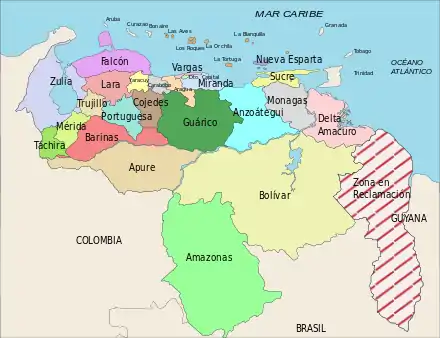 En mars 2024, le Venezuela adopte une loi qui désigne l'Essequibo en tant qu'état constitutif du Venezuela[8].
