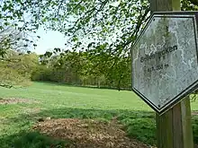 L'ancien cimetière de Guerlange. À l'entrée, on peut y voir un calvaire en pierre du XVIIIe siècle. On peut voir également les restes de la sacristie à trois pans de l'ancienne église datée de 1722 et abritant le monument funéraire de Katarina von Schifeldingen et un calvaire[6]. Ce dernier remonte au XVIIIe siècle et représente un Christ en croix entouré de saint Jean et de la Vierge. On peut y lire une inscription rappelant le nom des donateurs.