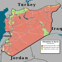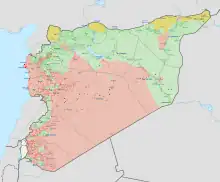 - (en) Carte géante actualisée de la guerre civile syrienne, Wikipedia anglais.